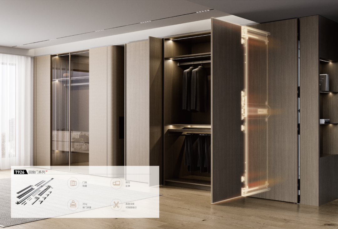 T926回旋門:顛覆傳統(tǒng)開門方式,通過隱藏式回旋結構與雙回路平衡調節(jié)專利,實現(xiàn)空間利用率提升與流暢開合體驗,被譽為“空間魔術師”。