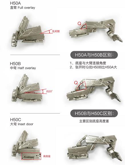 看特殊角度鉸鏈底座有沒有墊高,有的則是大彎;
