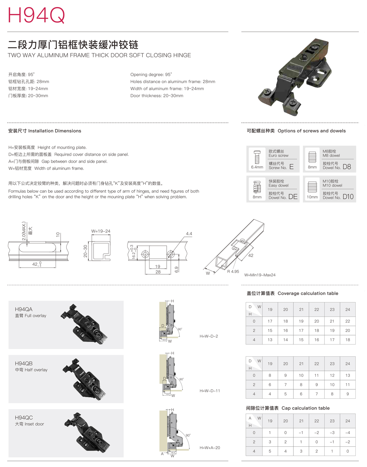 H94Q TWO WAY ALUMINUM FRAME THICK DOOR SOFT CLOSING HINGE