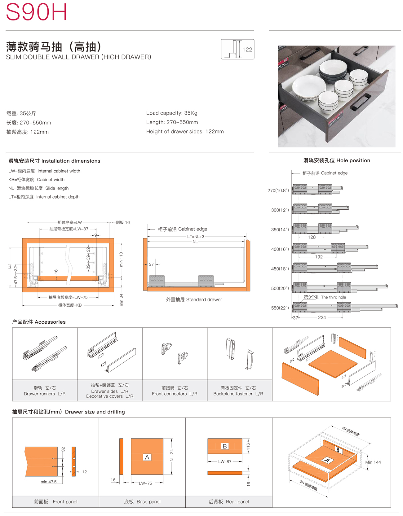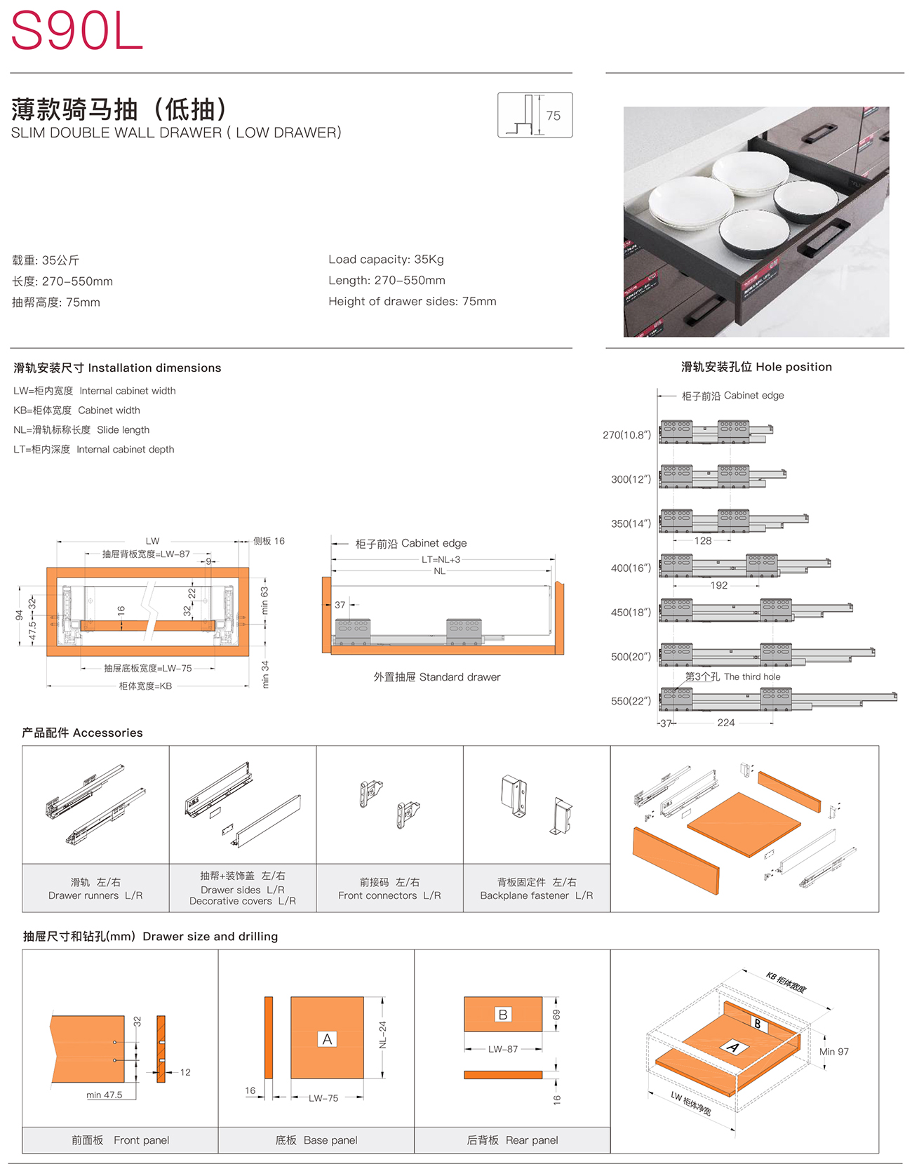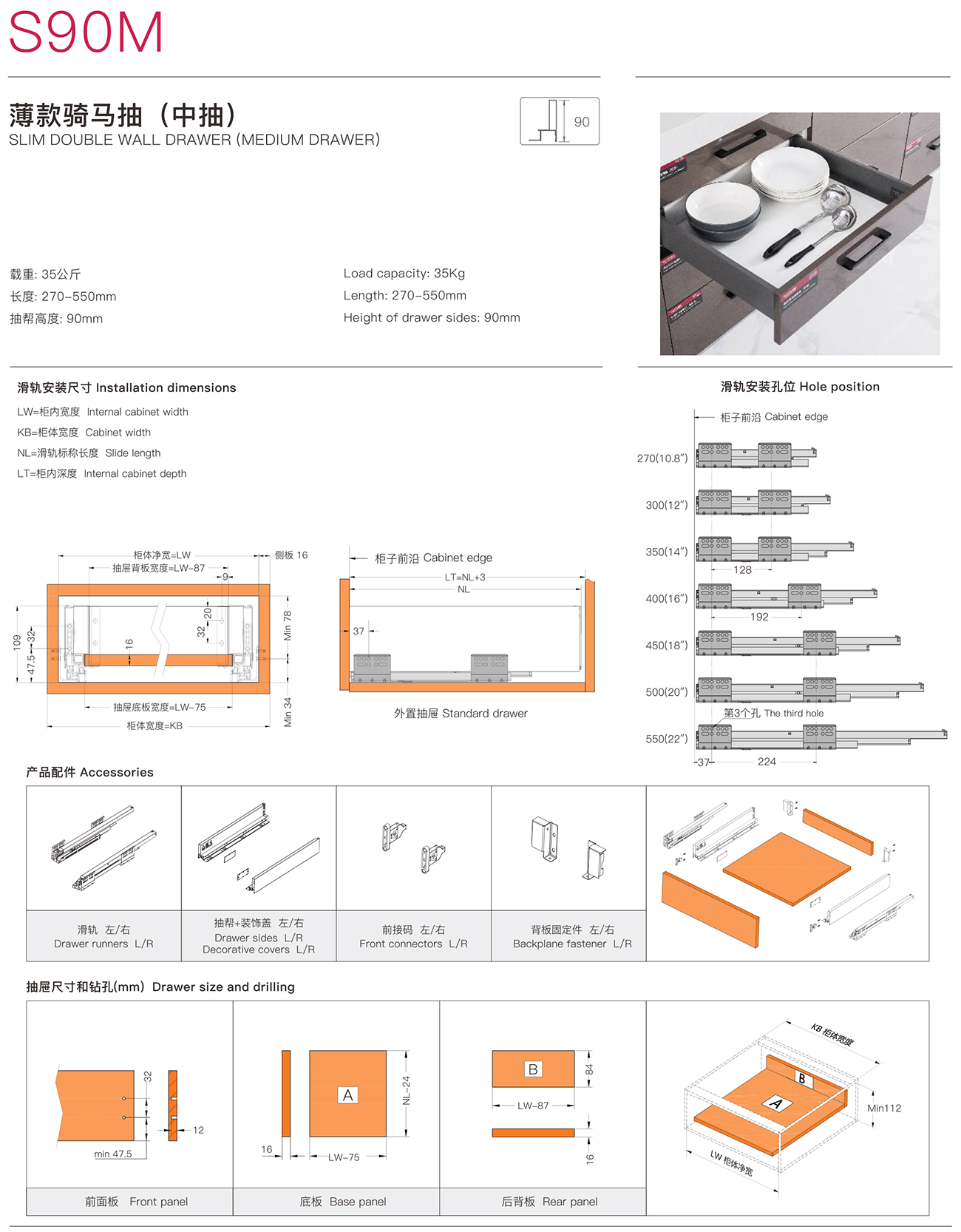 S90 SLIM DOUBLE WALL DRAWER