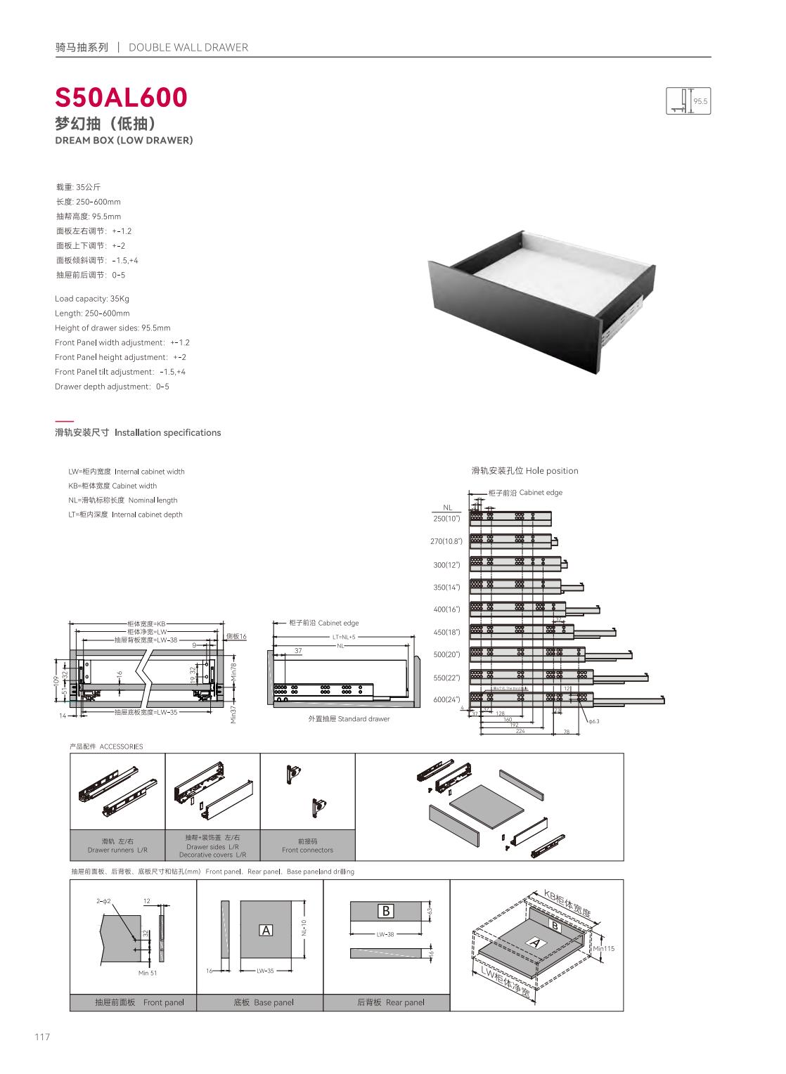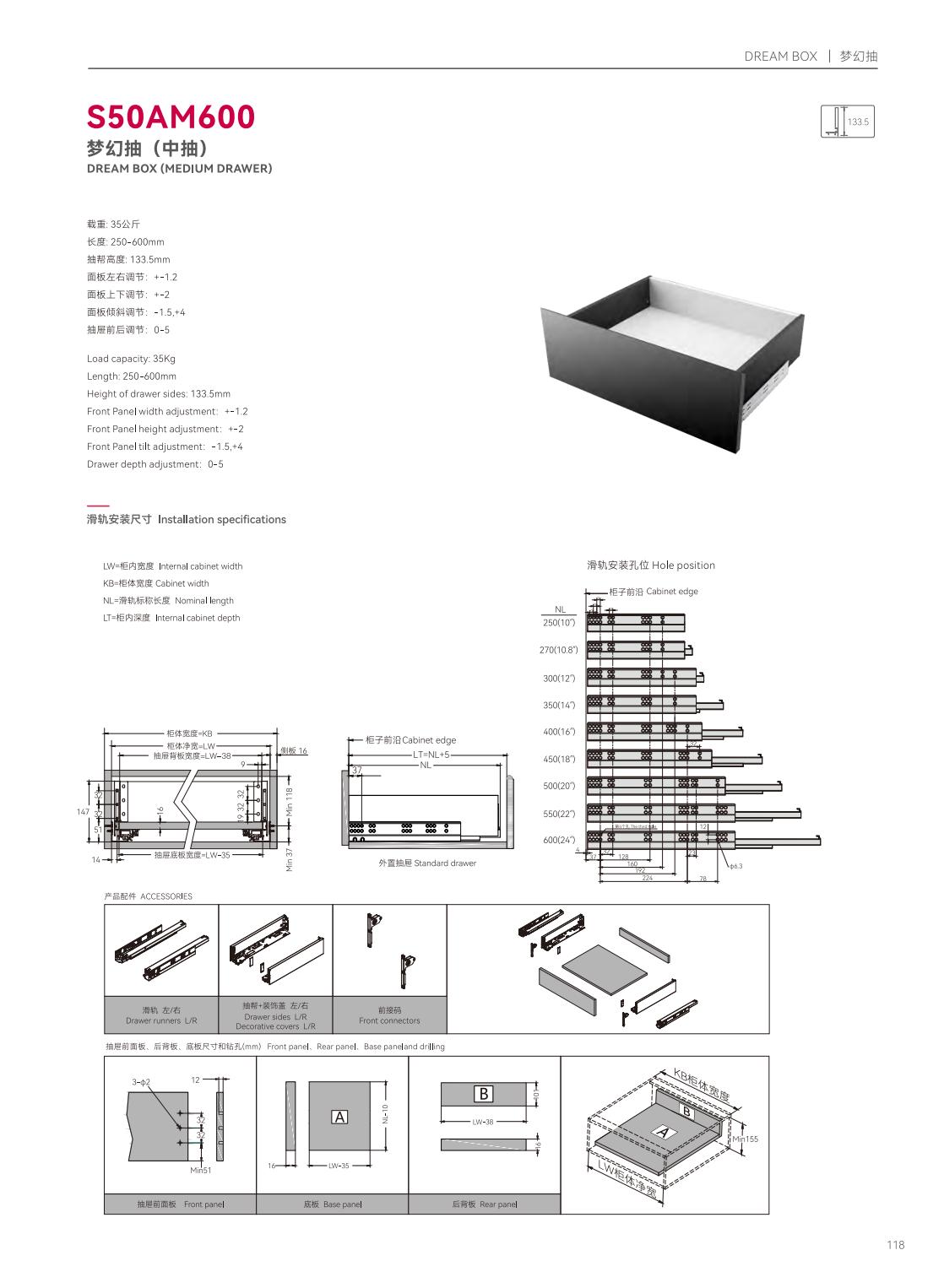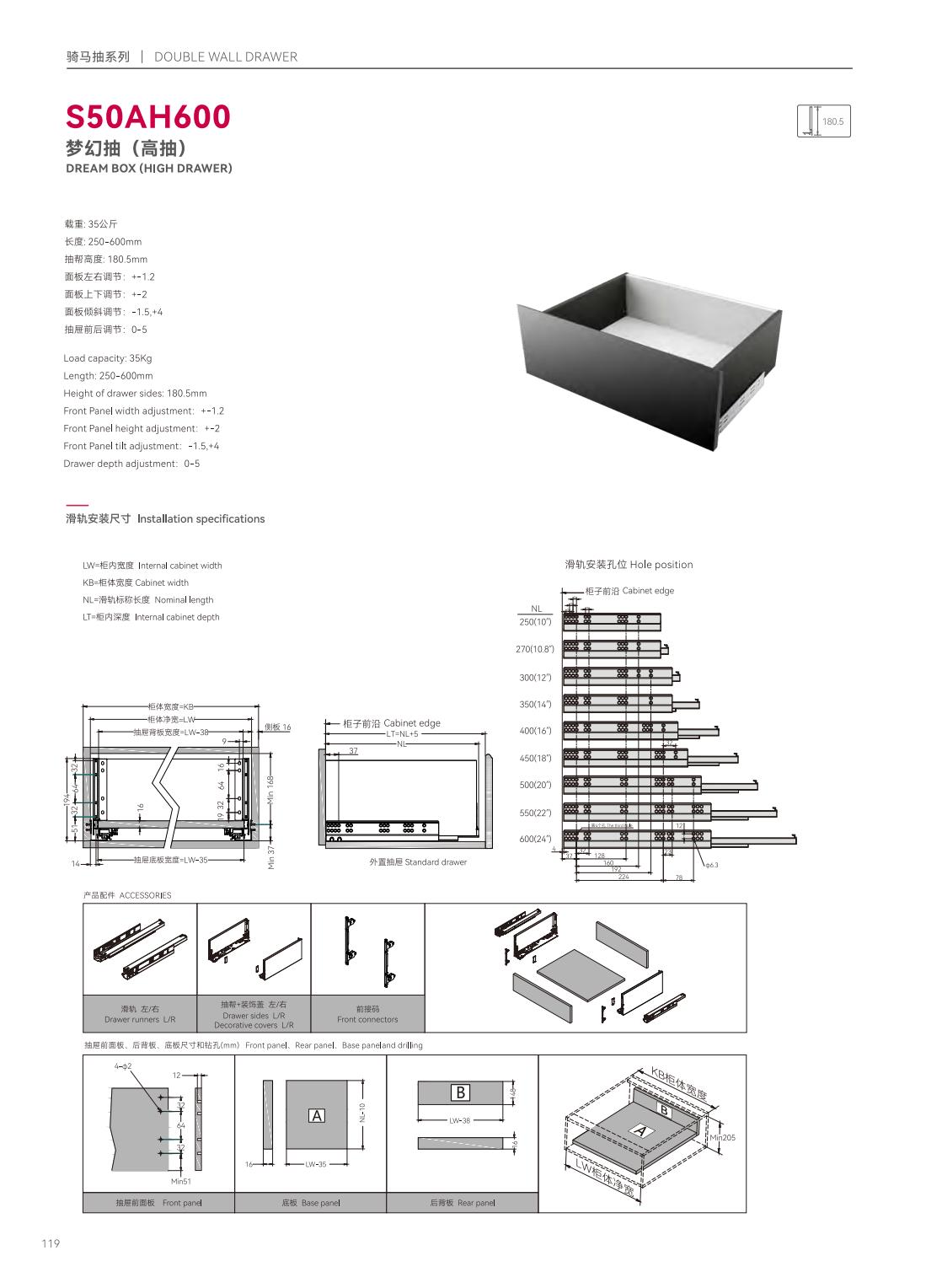 S39P601隱藏式三節(jié)反彈緩沖帶把手同步滑軌