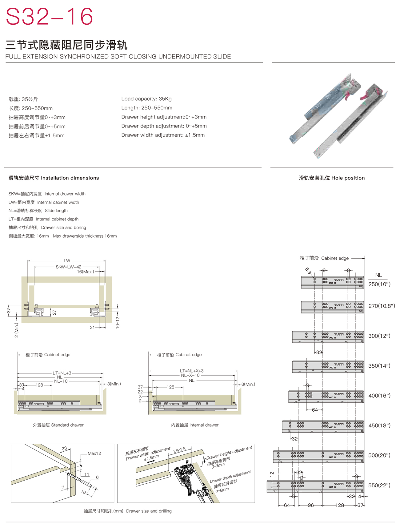 S32F803三節(jié)式隱藏同步反彈滑軌