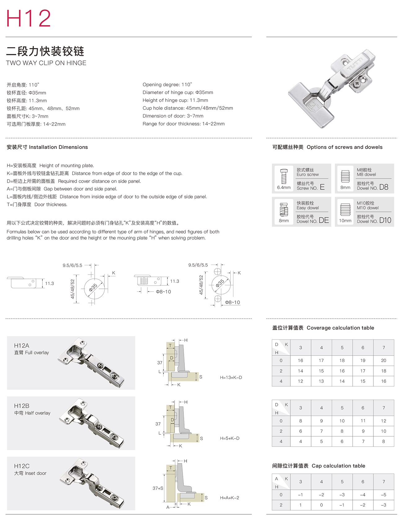 H12二段力快裝鉸鏈