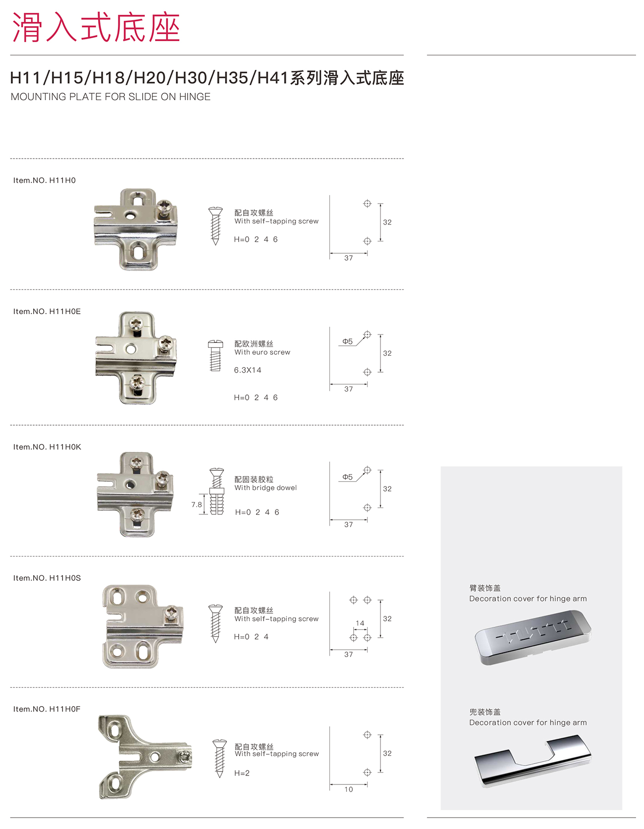 H11、H15、H18、H20、H30、H35、H41系列滑入式底座