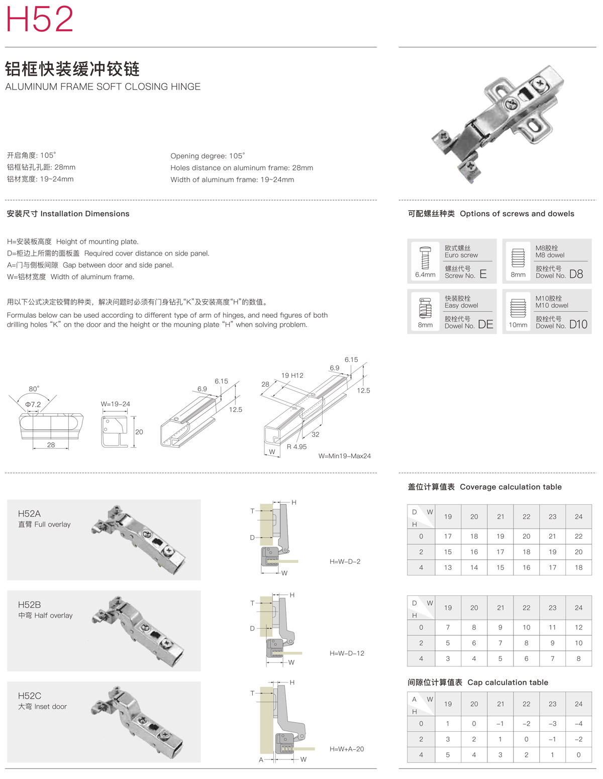 H52鋁框快裝緩沖鉸鏈