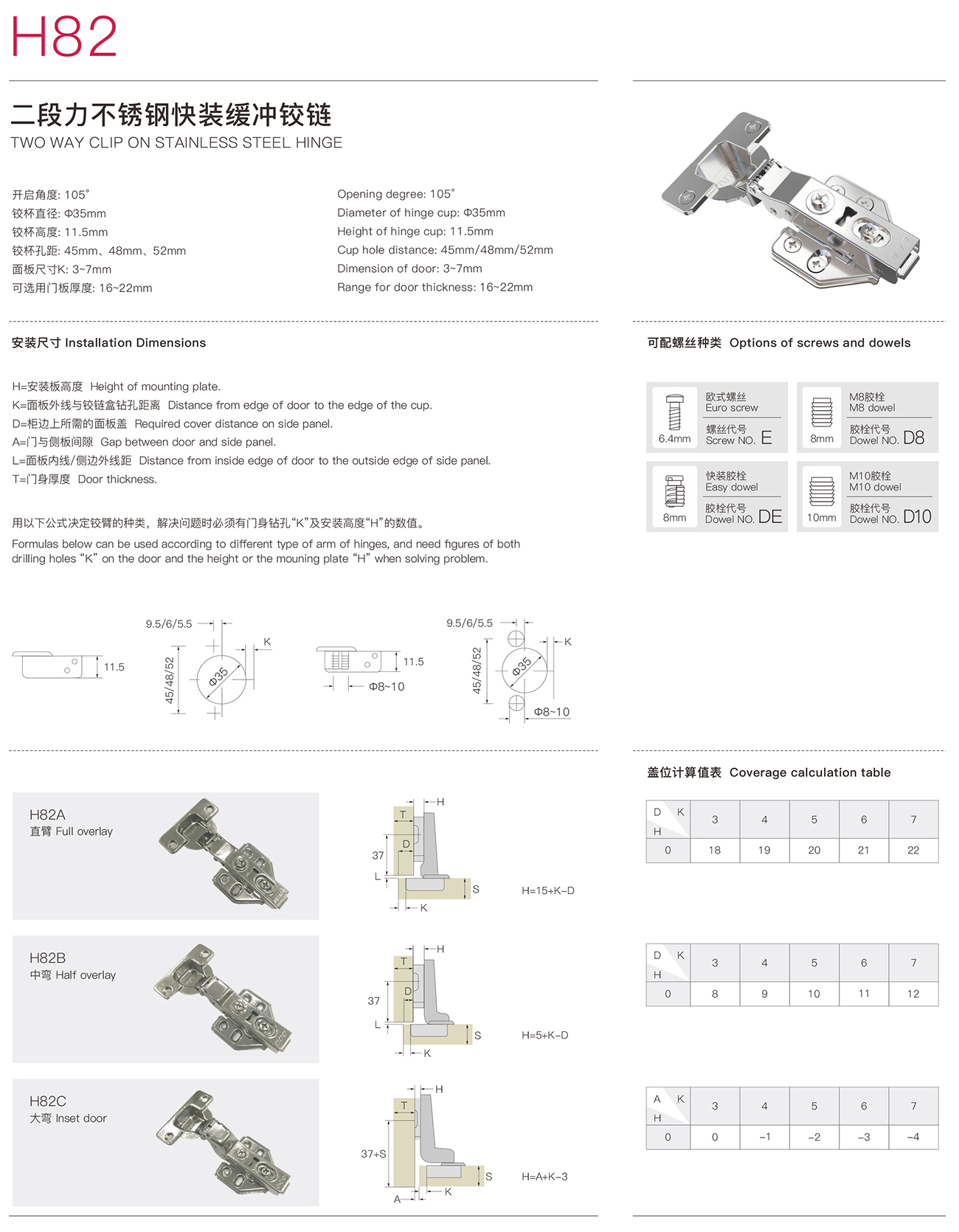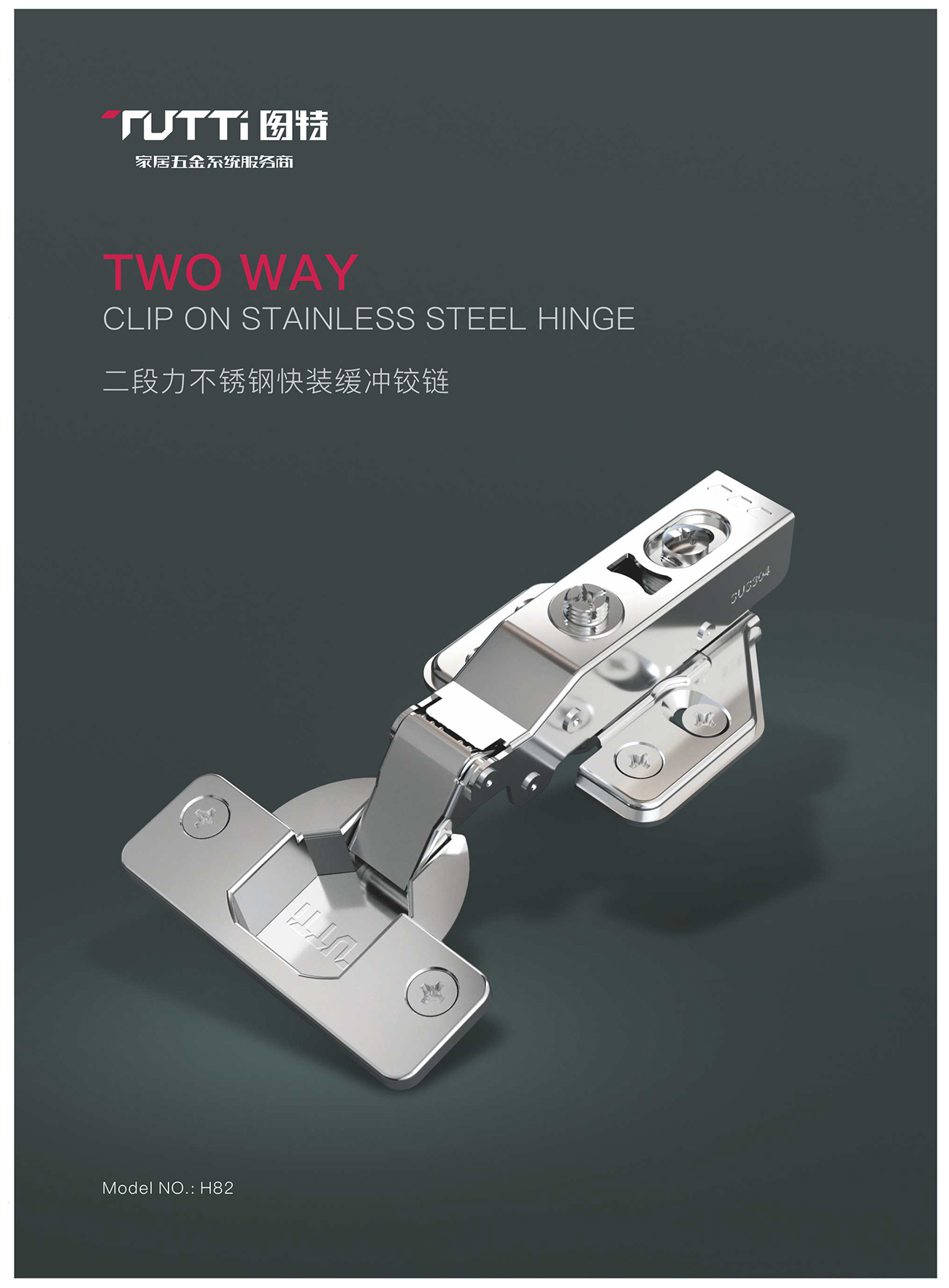 H82二段力不銹鋼快裝緩沖鉸鏈