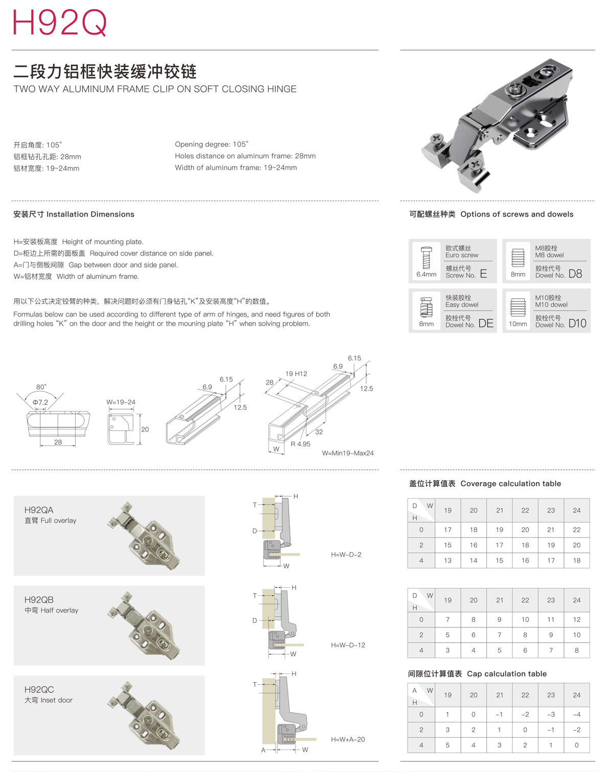 H92Q二段力鋁框快裝緩沖鉸鏈