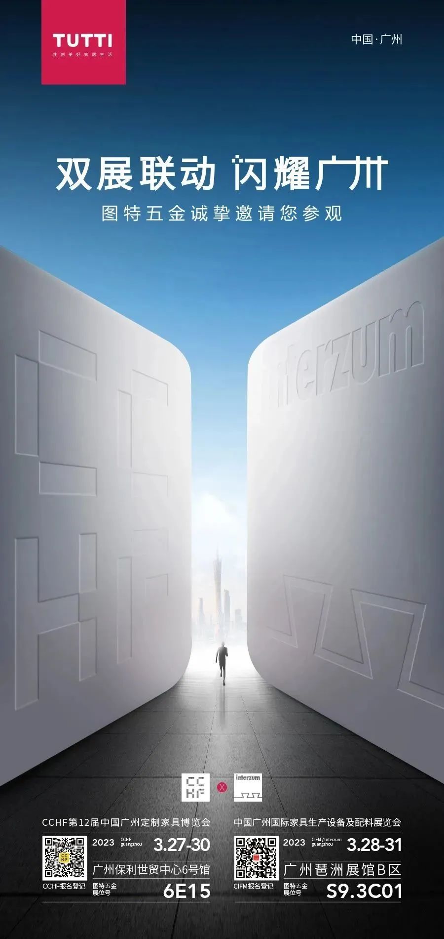 TUTTI×CIFM×CCHF 雙展聯(lián)動,閃耀廣州 圖特五金誠邀您撥冗出席 蒞臨圖特五金展位 參觀交流,共商共贏 共創(chuàng)美好家居生活 CCHF 第12屆中國廣州定制家居展覽會 時間:3月27-30日 展位號:...